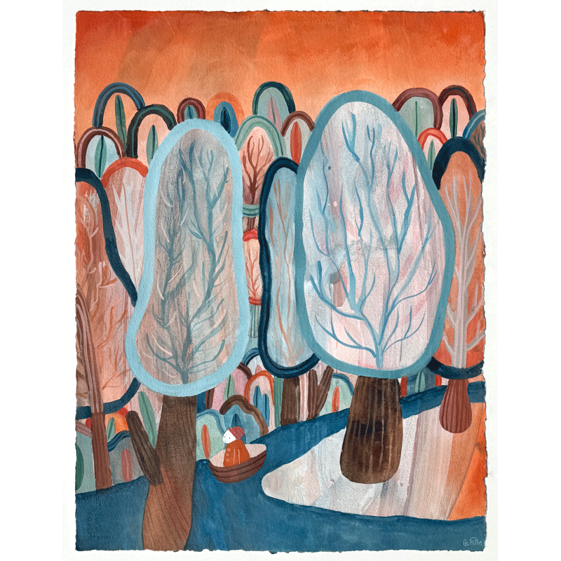 Akrylmaling og fargeblyant på tykt Arches akvarellpapir i bomull. 56 x 76 cm.