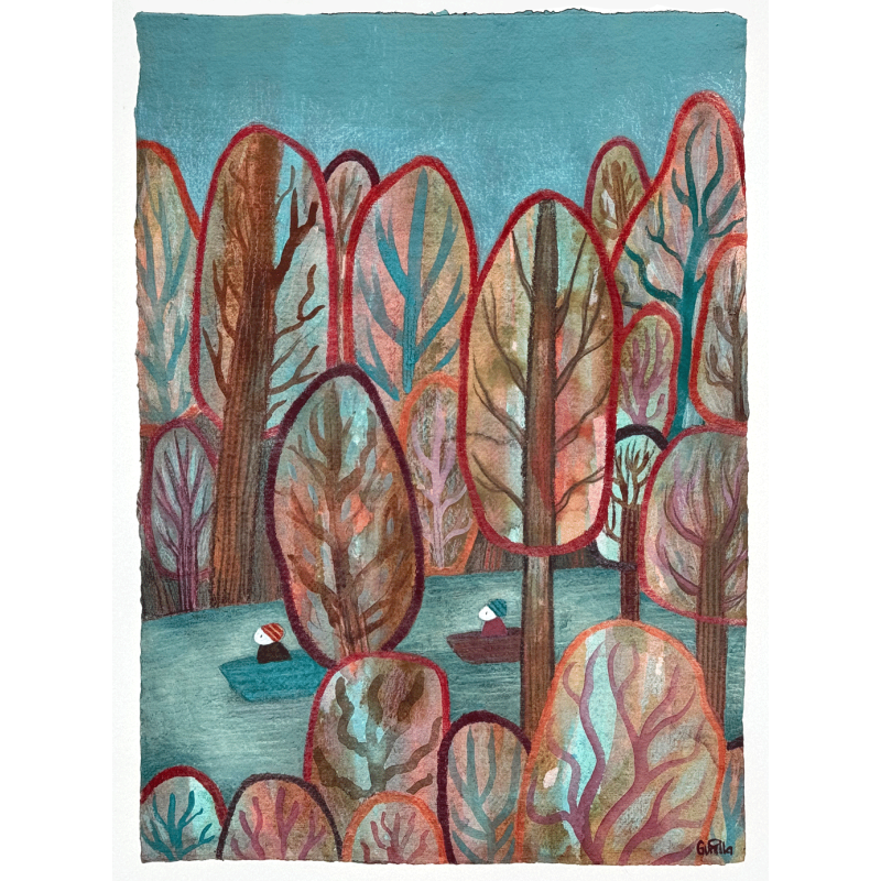 Akvarell, gouache og fargeblyant på indisk Khadi papir. 35 x 49 cm. Selges hos Galleri Neo i Stavanger.