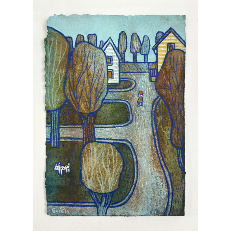 Akvarell og fargeblyant på akvarellpapir. Hele arket måler 17,5 x 25 cm.