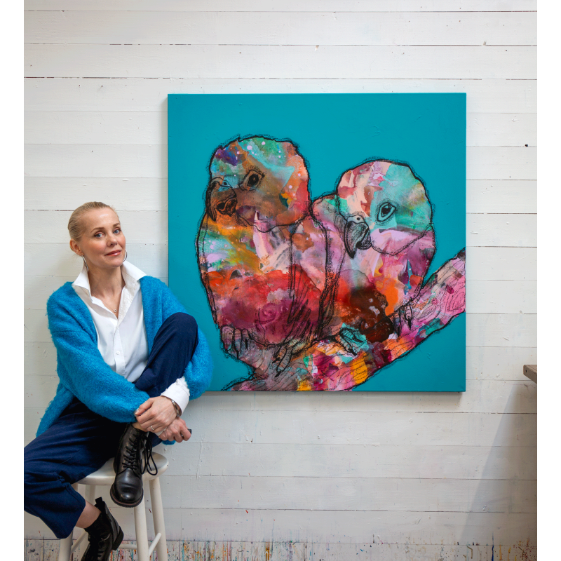 Maleri på lerret. 100 x 100 cm. Selges hos Kunst og Kaos på Røros: sigrid@kunstogkaos.no